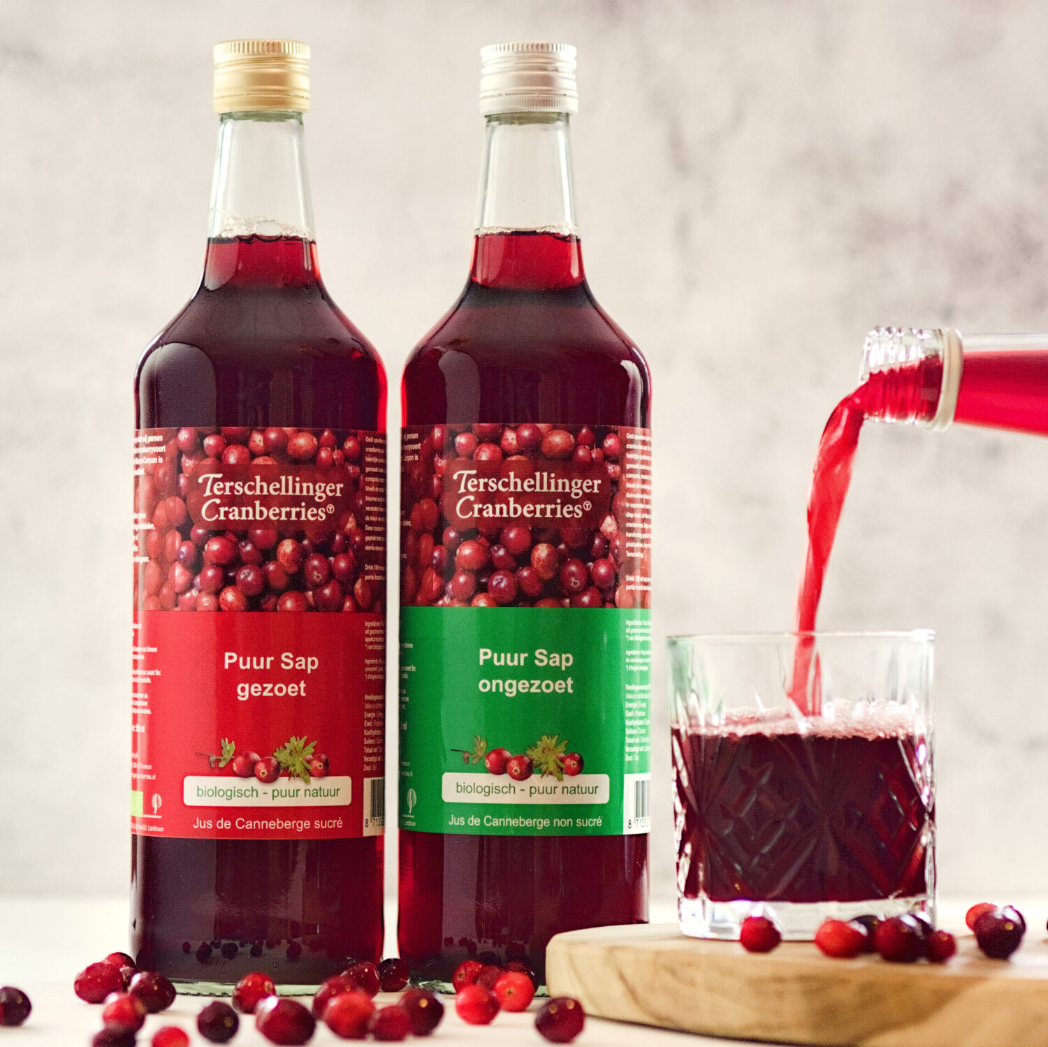 Onze sappen zijn van biologische oorsprong en worden onverdund voornamelijk verkocht in biologische-, reform- en natuurwinkels zoals EKOPLAZA. Terschellinger Cranberries worden met de handgeplukt. Puur natuur. Ze worden in de variaties ongezoet en gezoet op de markt gebracht.